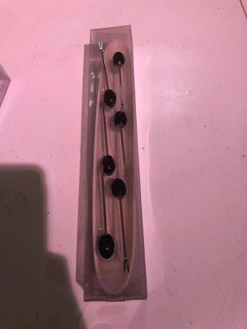 Ideal para aceitunas y otros aperitivos. Contiene fuente de diseño y 6 tenedores .
