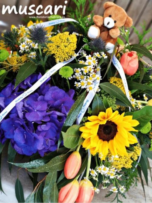 Ramo silvestre mezclando verdes y flores frescas, con flor seca.