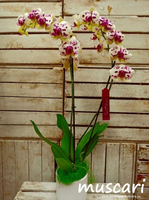 Orquídea pharenopsis en base decorativa de cerámica. Color según disponibilidad.